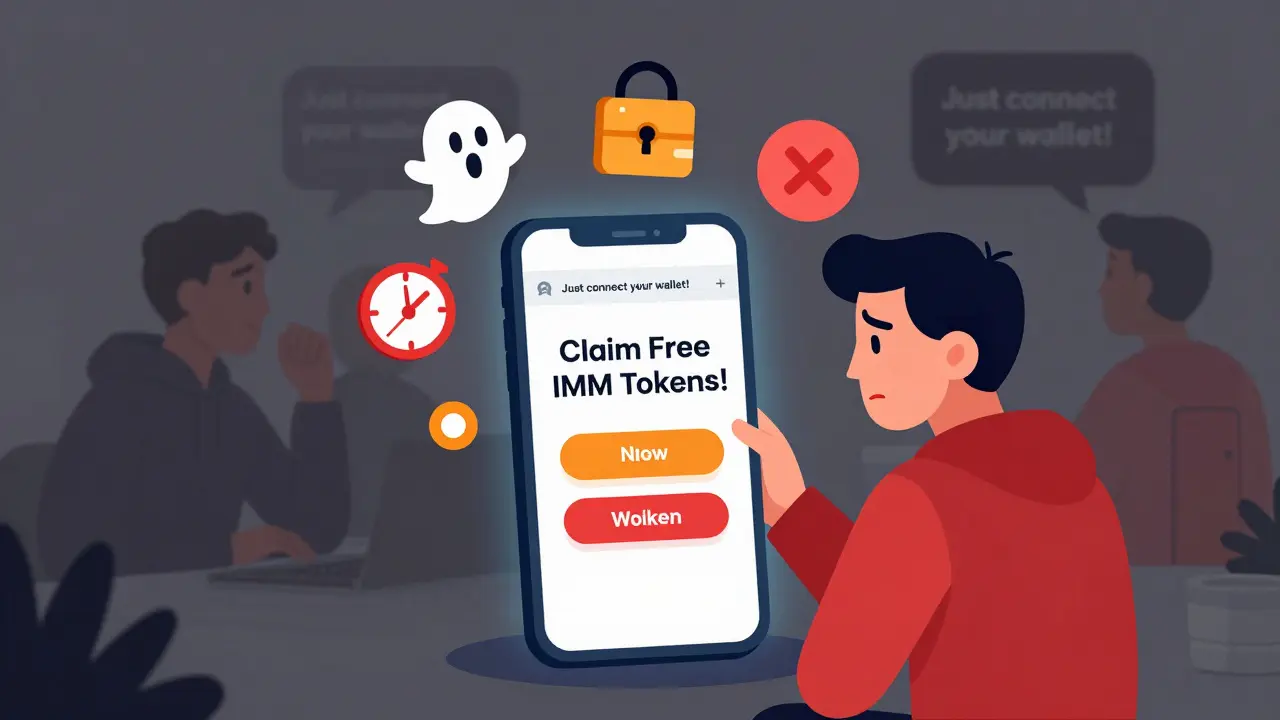 Here’s the hard truth: IMM is not a legitimate crypto project. It’s a ghost name being used to lure people into fake airdrops. These scams often start with a simple promise: "Join now, claim your IMM tokens before launch!" Then they ask you to connect your wallet, sign a malicious transaction, or send a small amount of ETH or SOL to "cover gas fees." That’s how they steal your funds.