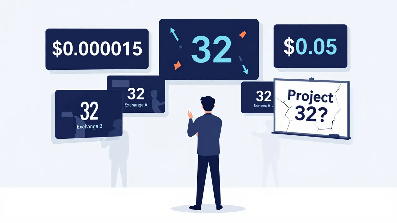 There’s a coin called Project 32, or just "32," that shows up on some crypto price trackers. But if you try to find out what it actually is - who made it, what it does, or why it exists - you hit a wall. No whitepaper. No team. No roadmap. No real community. And the price data? It’s all over the place.
